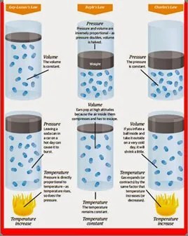Gas Laws explain the behavior of an ideal gas in terms of temperature, pressure, volume.